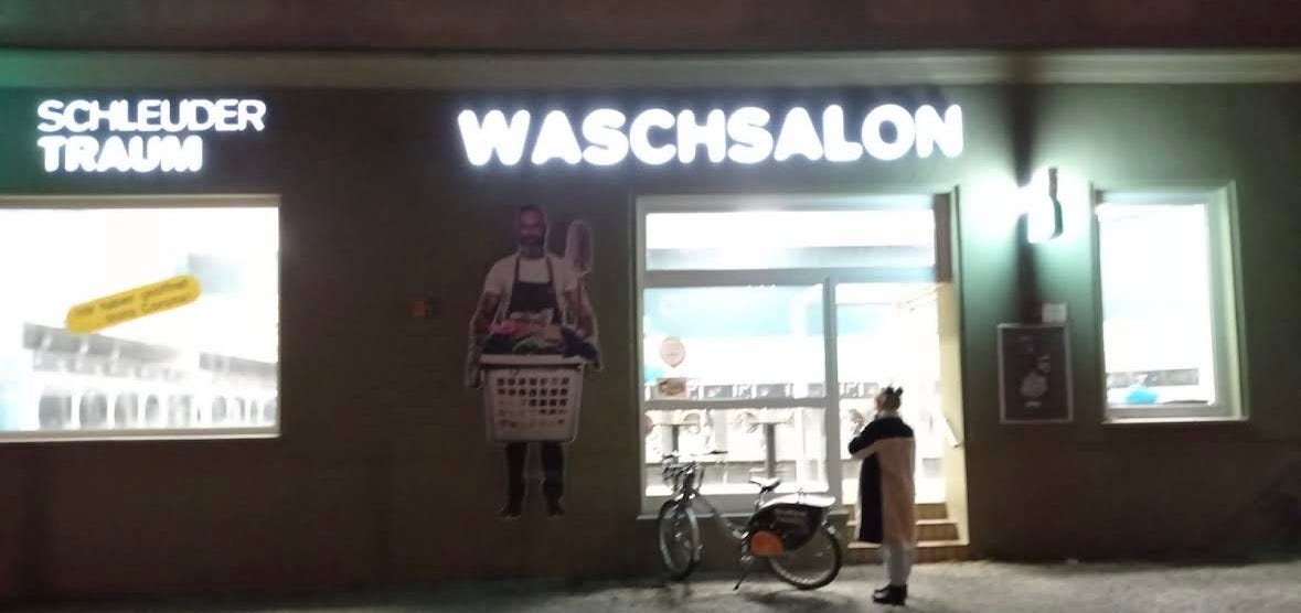 There’s a full-scale resistance in Berlin. My German laundromat went under the knife last week and switched sides. Dark for a few days without notice. A last bastion of the ‘90s no phones /no cards /no tips. Analog weakened at the base. Because yesterday the cheery fluorescents cast the sidewalk in blue again. Faded caricature of a woman displaying panties in a garland of bubbles, lit resolutely from behind. So, laundry bag nestled between knotted shoulders, I set off. I must share the same age as this linoleum waschsalon, I too briefly knew a time without screens. This employee-less laundromat has drawn a hard line, stopped digging its heels, made a leap forward, gave in. The machine now accepts card. Two blocks away, flea market stalls still wage their skirmishes, Cash only or card only or cash only card cash card Patrons passively observe, offer ammunition for each. My purse jingles with metal, is drowned out by monophonic beeps-chirps-rings. Can you hear the world turning? And so in the laundry I’m in line behind an old German woman. The machine has mystified her, A crumpled €5 note no consolation As she puzzles through the new order with shaky hands. She gets there eventually, mutters something I cannot understand. And in a fluid shameful motion I tap to pay. Device in commune with device. I select the “English” option, but you could now pick German, French, Italian, and Turkish. A buzzy chirp and I’m let through the red-rope barrier to cleanliness. Flag in the sand, I take my laundry, my modern prize. The cheap smell of lime-y soap and the question of Would I like to add tip?